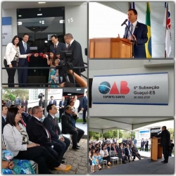 Inauguração Nova Sede da OAB 6ª Subseção No dia 16 de novembro de 2016 foi inaugurada a nova Sede da 6ª Subseção da OABES, localizada na Rua Emiliana Miranda Grando nº 15, bairro Quincas Machado em Guaçuí-ES. A solenidade contou com as presenças do Presidente Nacional da OAB, Dr. Claúdio Lamachia, do Presidente Estadual, Dr. Homero Mafra, bem como Presidentes de Subseções do Estado, membros da diretoria, conselheiros estaduais, federais e advogados da região.